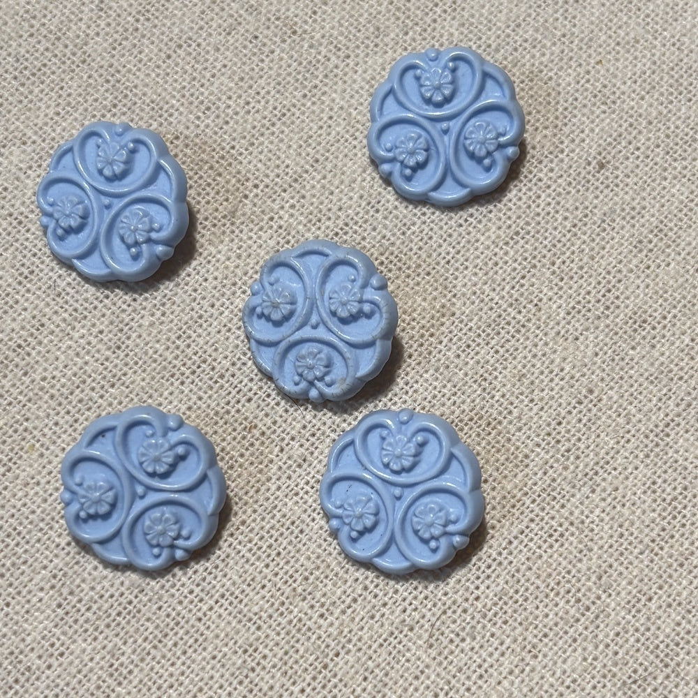 Blue Flower Curlicue Buttons 17mm x 5