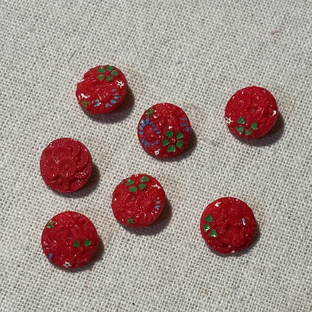 Vintage Red Handpainted Glass Buttons x 13.5mm x 7